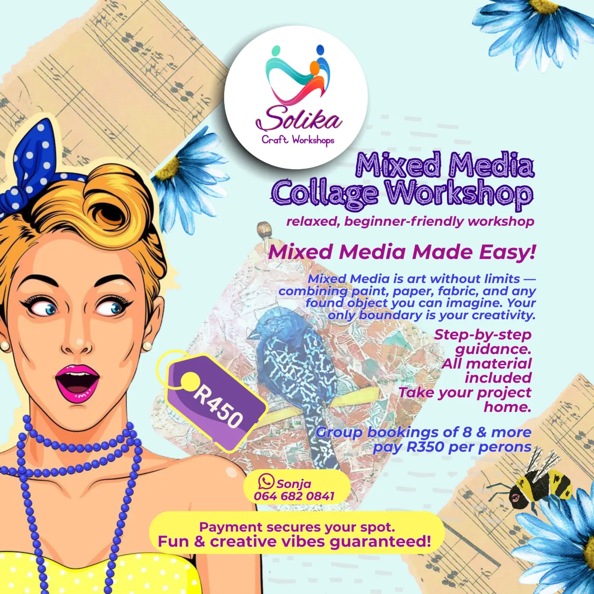 Ons werkswinkels is spesiaal ontwerp vir beginners én vir almal wat weer wil speel, eksperimenteer en iets moois met hul eie hande wil skep. Of jy nou wil verf, plak, kralewerk doen, mosaïek leer of gare in kuns omskep, daar is ’n kreatiewe ervaring vir elkeen.